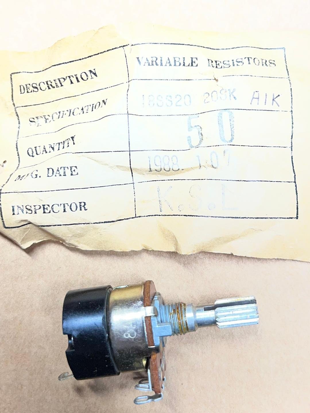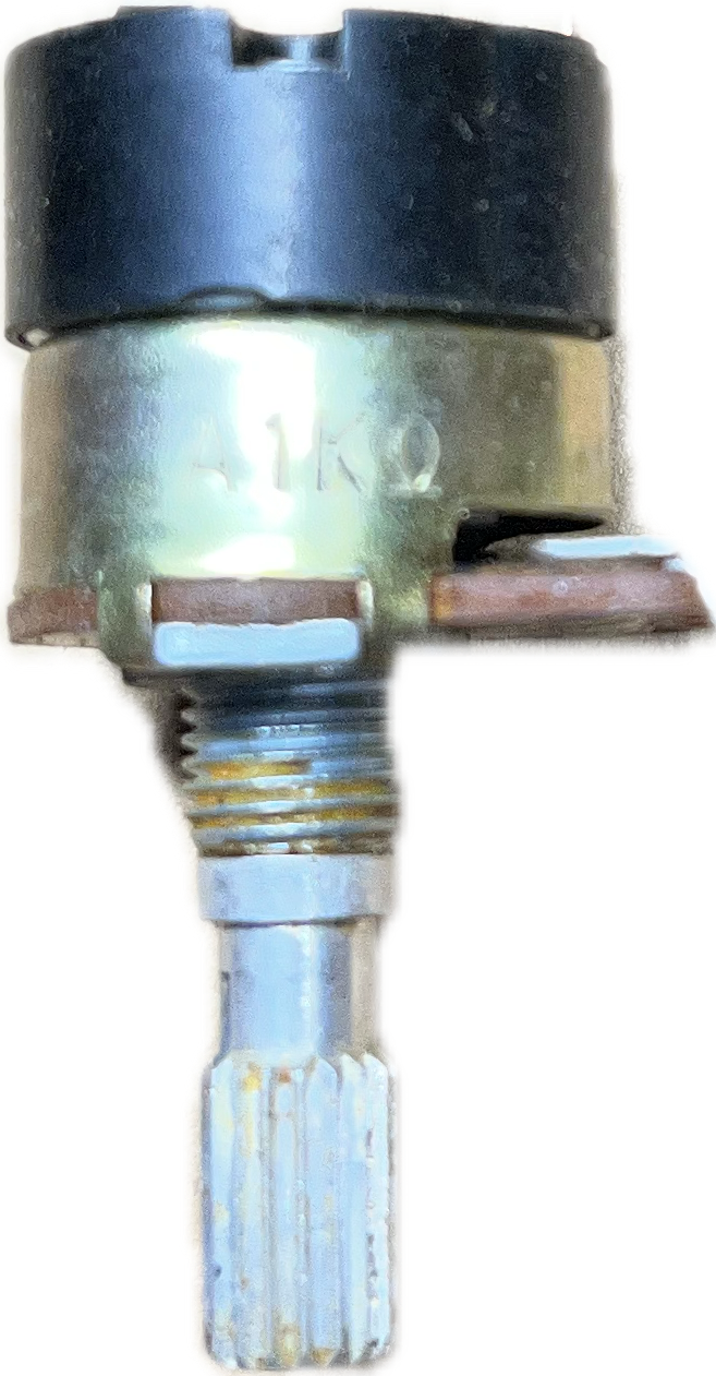 The A1K in the product identifier refers to a 1 kOhm (1000 Ohm) potentiometer with an audio (logarithmic) taper. The other numbers and letters (18SS20 20SK) likely refer to specific manufacturing details, dimensions, or series within a manufacturer’s catalog.