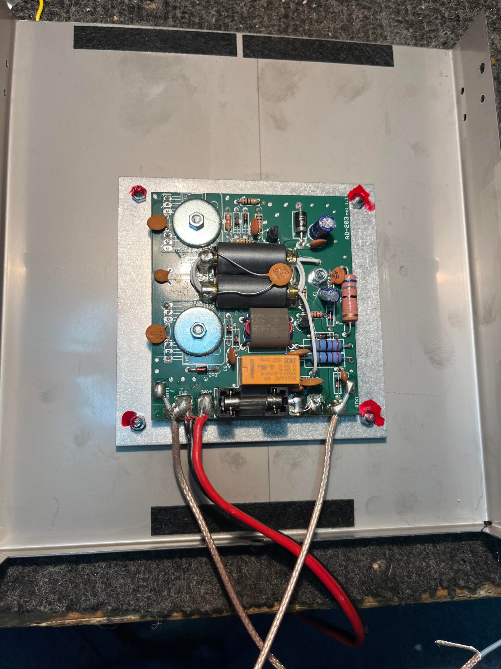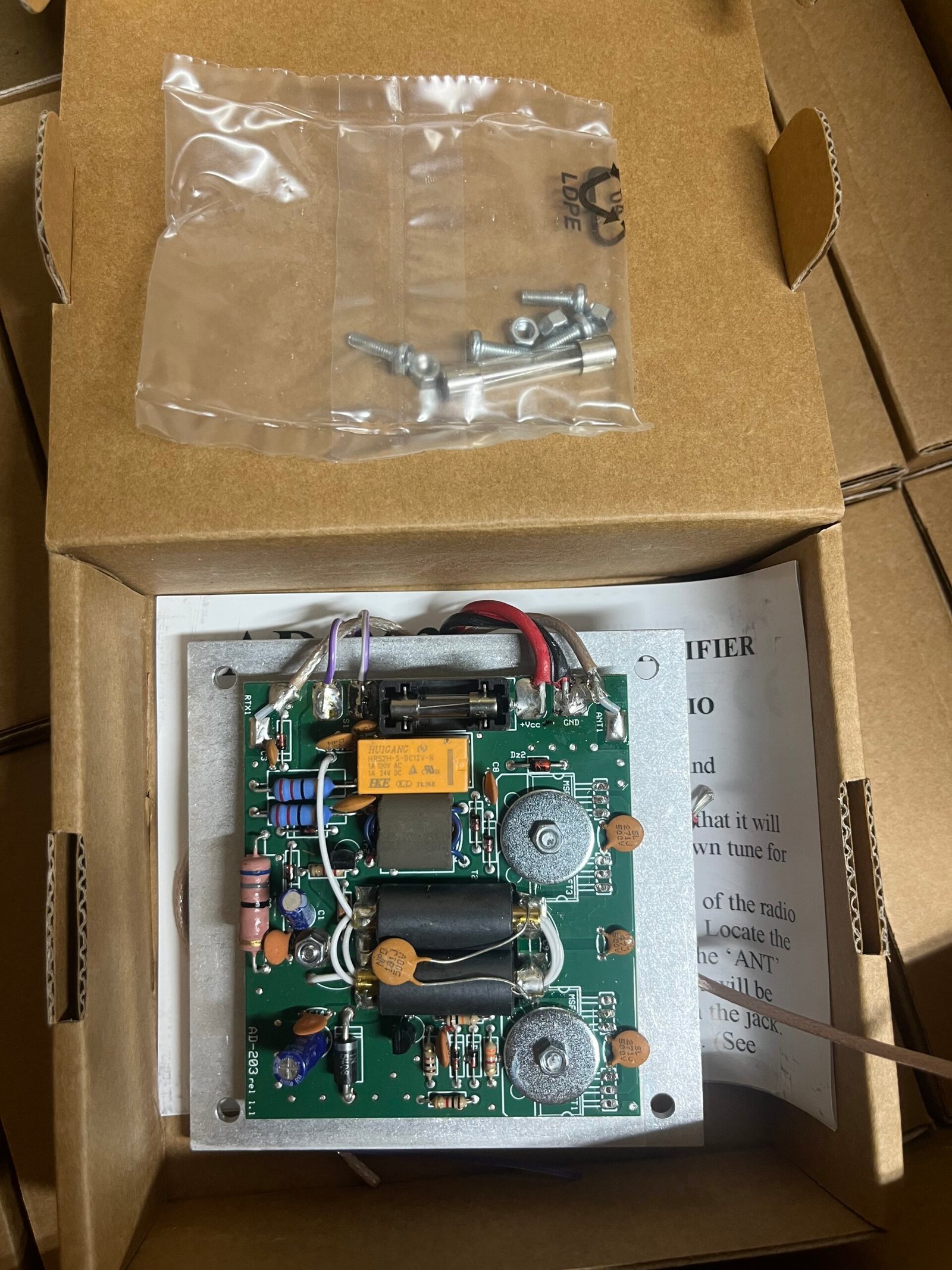 The RM Italy AD-203 is an internal linear amplifier board, also known as a “stinger board,”, or “Stinger 100″ designed to be installed inside a compatible mobile transceiver to increase its power output.