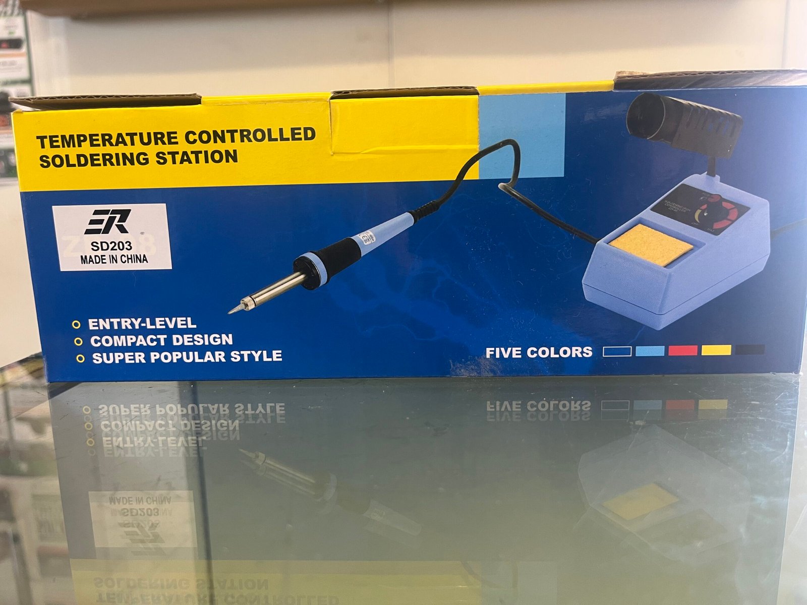 The ER SD203 Temperature Controlled Soldering Station is a 48 to 50 watt soldering station designed for hobbyist and entry-level electronics work, featuring adjustable temperature control from around 150°C to 480°C (302°F to 896°F).
