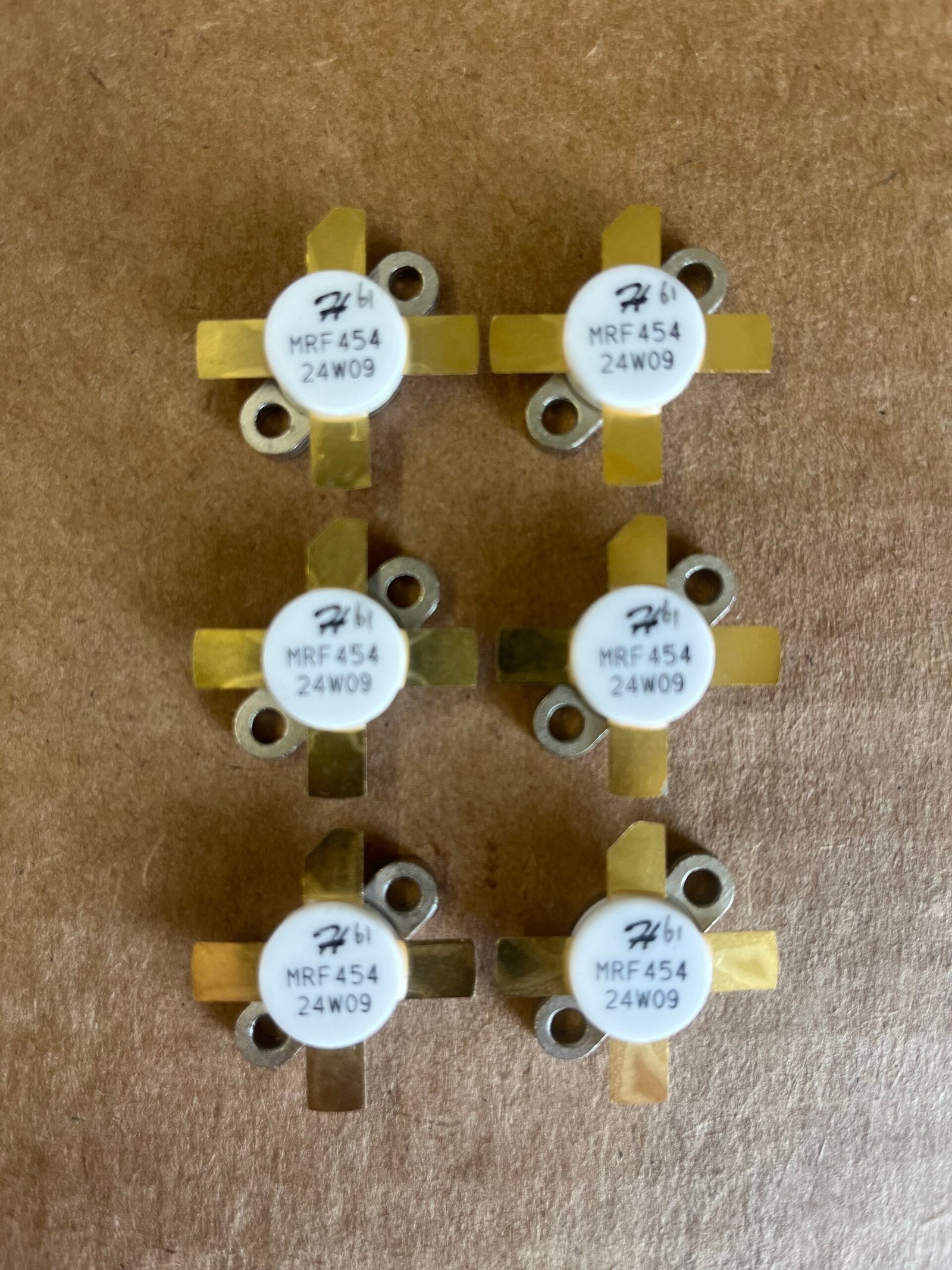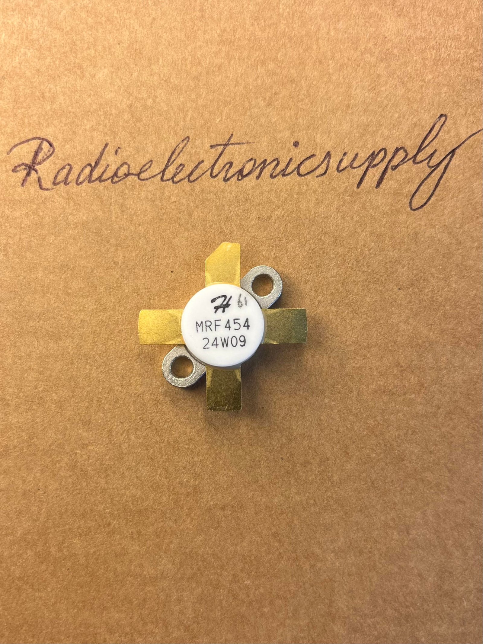 The HG454 transistor (also referred to as HG MRF454) is an NPN silicon RF power transistor designed for power amplifier applications in radio equipment, especially at HF frequencies. It is a functional replacement for the original Motorola MRF454.
