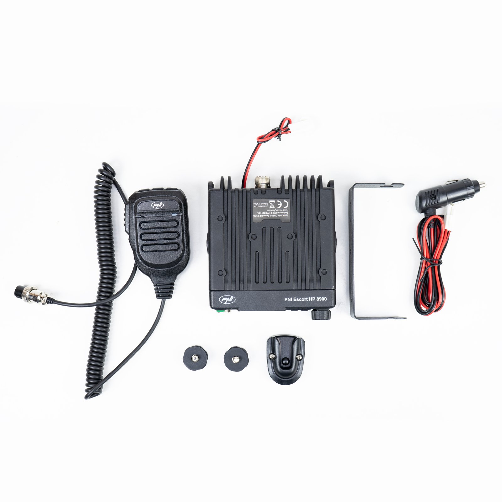 The PNI Escort HP 8900 is a compact, multi-standard mobile CB radio designed for use in cars and trucks, featuring a color LCD display and advanced noise control functions. It operates on 40 channels with 4W power output and supports both AM and FM modes (depending on the country’s regulations).